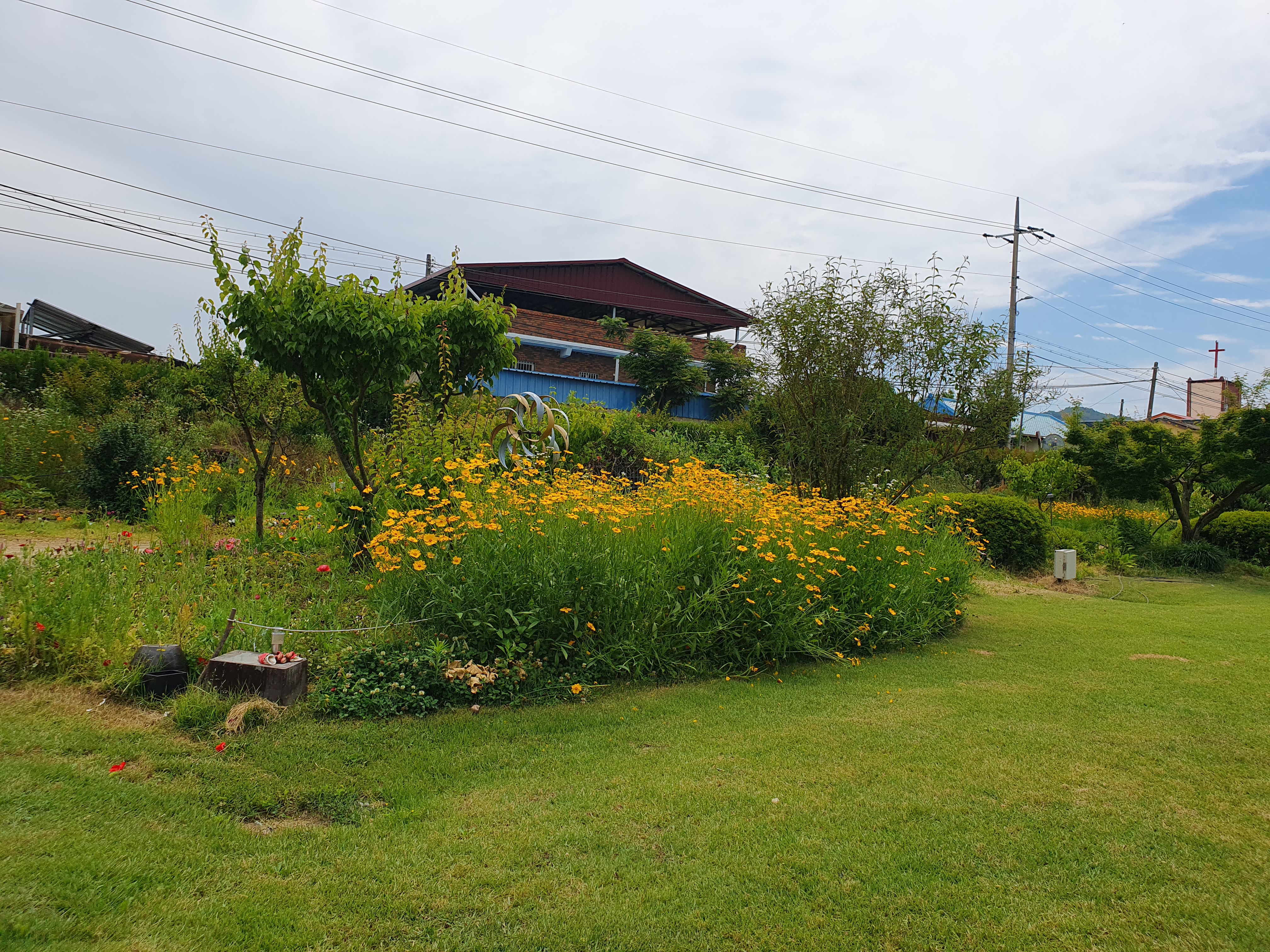 학교 정문 옆에 작은 정원같은 공간이 있는데 닭이랑 다람쥐 같은 동물도 볼 수 있습니다.